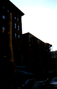 711 Boylston Street 8/14/96, 8:50 pm Warm, but not as muggy as the last few days. 17 visible segments (descends directly into dumpster). Had just come from library - got a book on grants. Shirtless man with shopping cart full of bottles later walked past. |