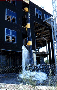 Corner of Tremont & Ruggles - New Boston Police Department 8/25/96, 2 pm Hot, not humid, breezy. 13 segments, 3 yellow, the rest black. The yellow ones are the ones you put the trash into. On my way to Bruno's to record a song tentatively titled "Cucumber Bird." |